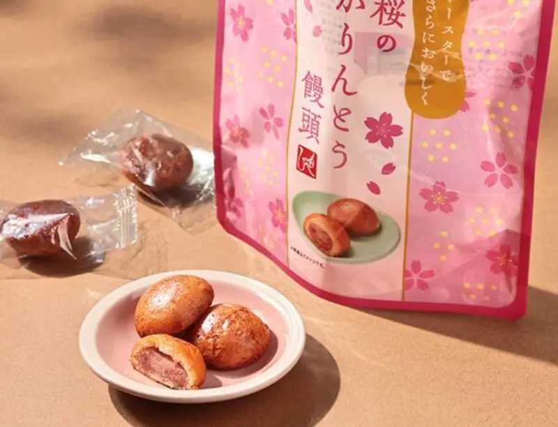 這款櫻花花林唐饅頭(桜のかりんとう饅頭)的櫻花餡料使用了櫻花葉,餡料完美地包裹在特製白蜜麵團裡,風味香甜。建議在食用前將其放入烤箱中,簡單烤2至3分鐘,稍微放涼後就能品嚐到彷彿剛炸好的酥脆口感。成分包括櫻花餡料、小麥粉、砂糖、蛋和油。和一般日式饅頭不同的是,花林唐饅頭有股油香,保證合台灣人的口味。日本售價為一包429日幣,含稅。