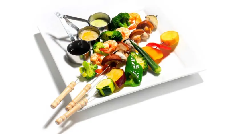 時令蔬菜串燒 800日圓、蝦子蔬菜串燒 900日圓、生蠔和蘑菇串燒 900日圓。生蠔搭配蔬菜