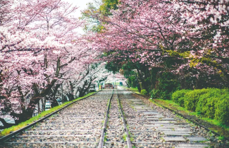 幾乎無人可以抗拒櫻花與鐵道的夢幻組合。京都市內除了熱門的嵐山小火車外,還有一個地方可以拍攝櫻花鐵道,就是鄰近南禪寺的「蹴上傾斜鐵道」。這條老舊的斜坡鐵道全長約600 公尺,曾於1891年至1948年期間輔助疏水道運送物資。從大津到京都的琵琶湖疏水道中,有段水路的落差較大,必須利用鐵道才能上坡,後來船運式微,傾斜鐵道隨之停用。而後有人在鐵道兩旁種植山櫻和染井吉野櫻,意外成為賞花客喜愛的景點。賞花後沿着鐵路向疏水道的上游步行約10分鐘,就能抵達免費入場的琵琶湖疏水紀念館,有興趣的話不妨入場參觀。![]()
