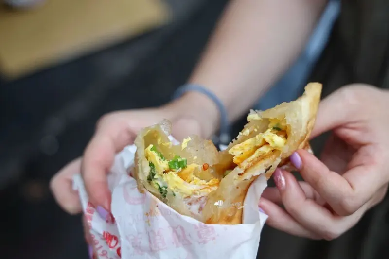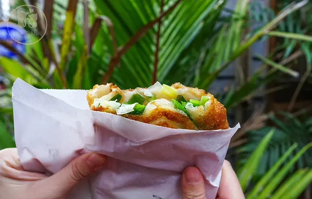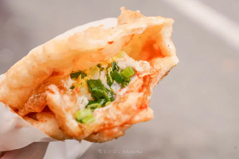 熱熱的吃真的很好吃,餅皮炸得香酥脆,咀嚼起來還帶點Q勁。三星蔥多汁香甜,混合著半熟蛋液,真的太迷人!若喜歡吃辣的人一定要加辣,生辣椒的麻香辣,吃來更過癮!<全文介紹>