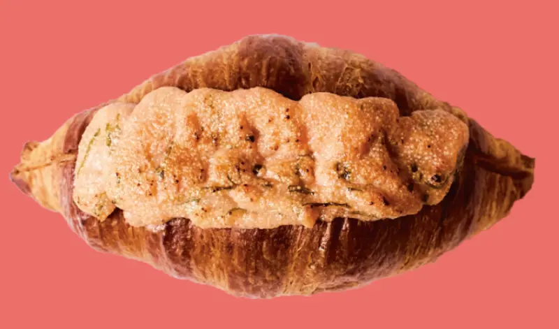 明太子熱狗可頌以滿滿奶油香脆的可頌夾上烤明太子,一咬下去就能感受到烤明太子的香氣和濃郁口感、大葉清爽的香草味和美乃滋。價格680日圓。 ![]()