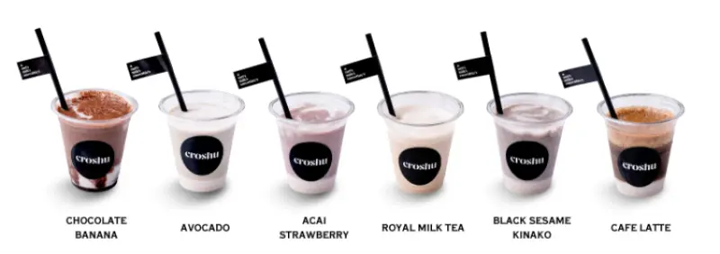 除了以上的新商品以外,Croshu & Nut's Milk's Smoothie's的可頌 320日圓起,堅果奶昔 680日圓,口味共包含咖啡拿鐵、皇家奶茶、巧克力香蕉、酪梨、巴西莓和黑芝麻。消費者也可以點可頌IN 堅果奶昔的套餐。