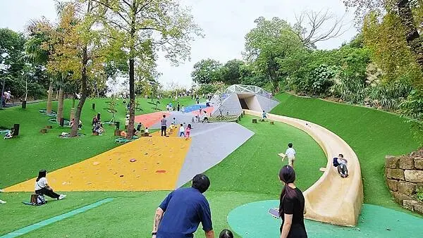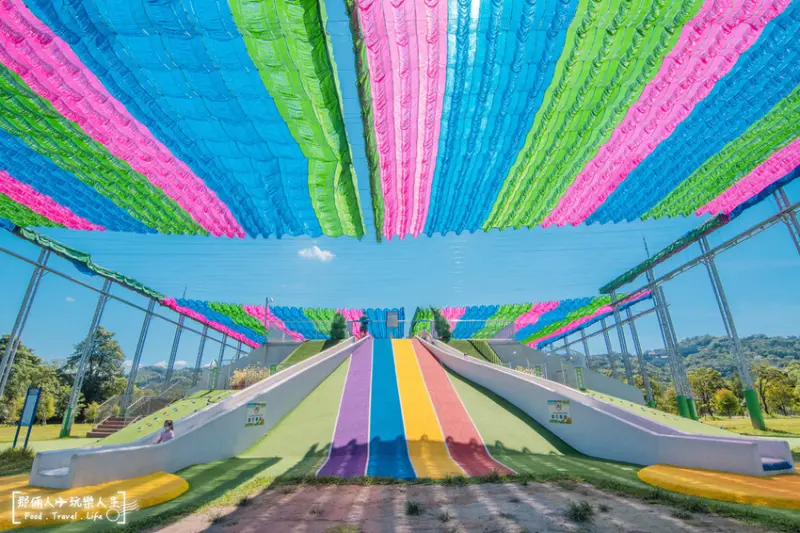 30公尺長的彩虹樹藤溜滑梯沿著山坡而下,超溜的速度讓大人小孩都驚喜,另外還有八米長的磨石子溜滑梯、旋轉盤、跑酷棧道及攀爬設施等,免費的親子景點是兒童節、清明連假遛小孩好去處...<全文介紹>