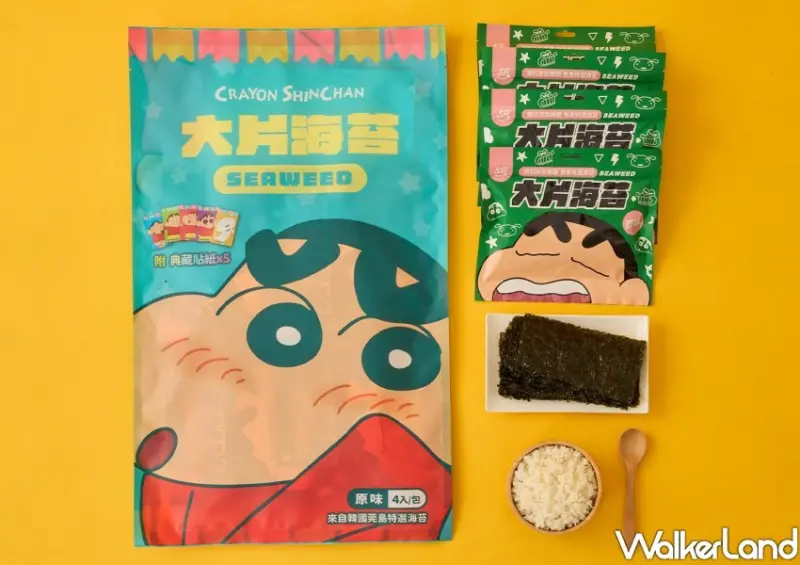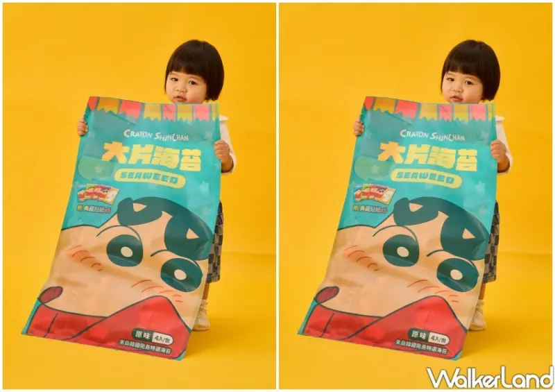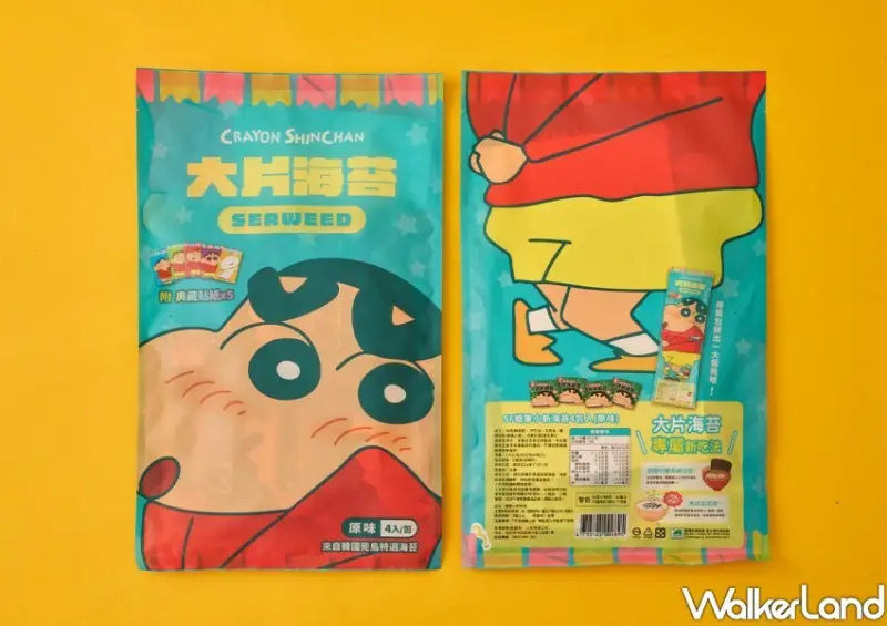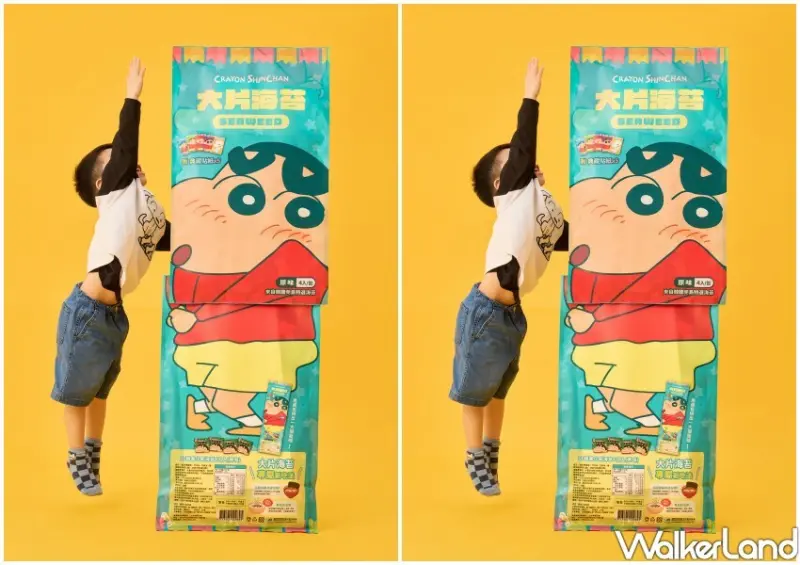 此次,推出全新「蠟筆小新特大版海苔」兩面分別是小新的上下半身,趣味拼接包裝後可達140公分,接近真實比例還原野原新之助身高105.9公分,內含四包原味大片海苔及五張蠟筆小新典藏貼紙,有吃、有拿、還被蠟筆小新萌到。