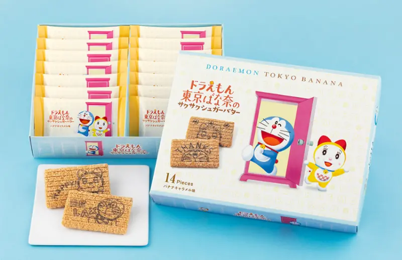 聯名款「哆啦A夢 東京芭娜娜香蕉蛋糕『找到了』」也特別使用日本產的米粉製作,取代麵粉,增添Q彈口感,每款蛋糕上還印有哆啦A夢的俏皮臉孔,表情各異,讓人捨不得吃;而「哆啦A夢 東京芭娜娜奶油夾心餅乾 香蕉焦糖味」則是以米粉、黑麥及大麥製成,印上了哆啦A夢及哆啦美的圖案,還搭配不同的語言,互動感十足!