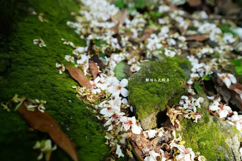 桃園龍潭石門山溫泉會館旁油桐花已滿開,下起了四月雪,花開得又大又滿,美麗極了~ 舒適的微風徐徐吹來,看著油桐花散落一地,坐在油桐樹下賞花非常愜意,若能在此野餐感覺超浪漫的~<全文介紹>