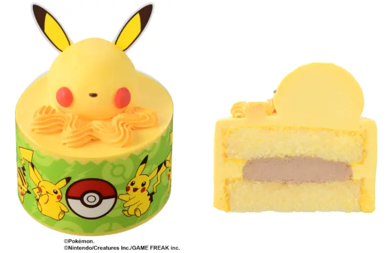 在鬆軟的海綿蛋糕夾入滑順的巧克力奶油,最後再用溫和香蕉奶油裝飾,最上方在放上皮卡丘造型的奶油。不僅模樣可愛,風味也是深受兒童喜愛的巧克力香蕉!價格745日幣(含稅),販售日期也是即日起至5月下旬。![]()