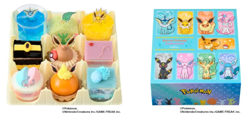 這款精選杯子蛋糕組合,嚴選了8個伊布進化型態及伊布為元素,打造出9款各具特色的繽紛杯子蛋糕,分別有【仙子伊布】優格風味慕斯&草莓風味海綿蛋糕、【火伊布】蘋果果醬鮮奶油塔、【冰精靈】白巧克力鮮奶油蛋糕、【月亮伊布】香蕉鮮奶油巧克力蛋糕、【伊布】巧克力焦糖鮮奶油塔、【太陽伊布】草莓鮮奶油蛋糕、【水伊布】檸檬蘇打風味果凍、【葉伊布】開心果風味海綿蛋糕卷和【雷伊布】鳳梨果醬熱帶慕斯。價格3,132日幣(含稅) ,販售日期從即日起至5月下旬。![]()