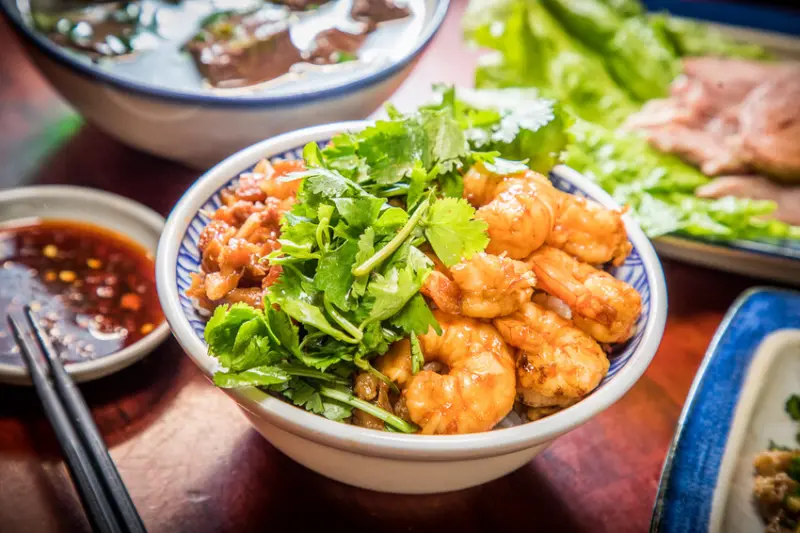蝦滷飯的蝦都是嚴格挑過,每隻大小都差不多的肥,加上醬汁炒香,入口Q彈鮮甜,新鮮度一流,滷肉也很有水準,醬香濃郁入口即化,還有黏嘴感,真的有夠強啦!<全文介紹>