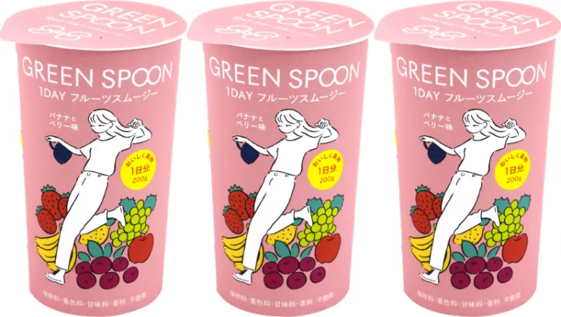 Green Spoon 堅持食材本來的美味,不使用任何防腐劑、合成甜味劑、合成著色劑、發色劑、漂白劑。本次,Green Spoon打造了2款專為忙碌上班族打造的健康奶昔,分別是「1DAY 蔬菜果昔 蘋果鳳梨」(含稅238日圓)和「1DAY 水果果昔 香蕉莓果」(含稅238日圓),目前已經在全日本的FamilyMart約15,900家店舖(除沖繩縣外)開始銷售。![]()