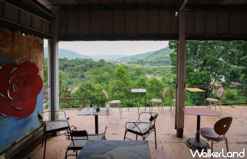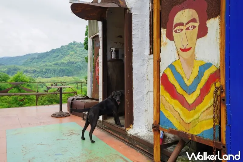 然而,若將「鐵帽咖啡館」視為一間小型美術館也沒問題,老闆是資深鐵雕藝術工作者;整個空間皆出自他的雙手,運用鐵雕、荒木以及石頭等,一點一滴在半山腰建構出來,不論是牆上、桌椅、天花板,處處都能看見老闆的好手藝和創意。平時經營「鐵帽咖啡館」之餘,也會接鐵雕藝術的訂單。
