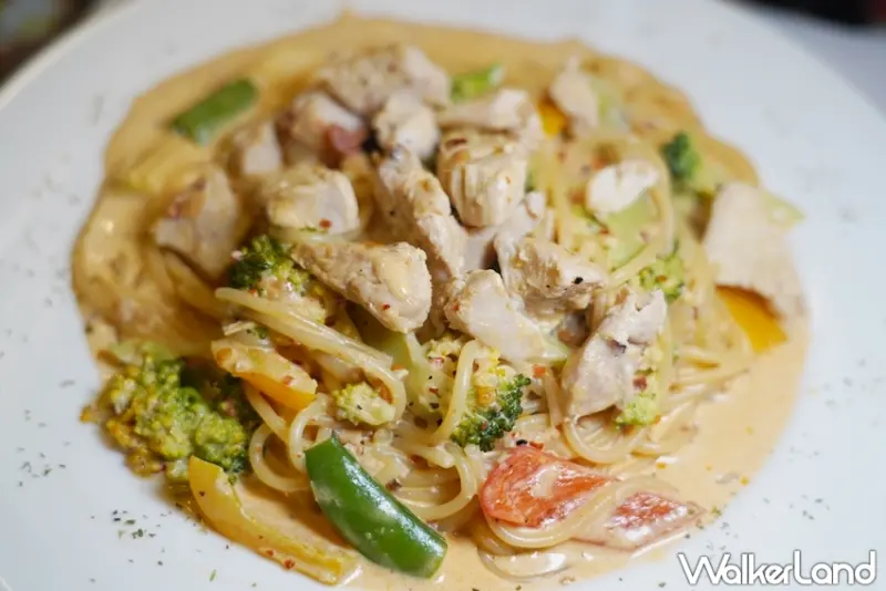 看似簡單平凡的「辣味麵」同樣也是「巧味爐歐法餐廳」高人氣招牌料理,精選多款辛香料拌炒,搭配加入鮮奶製作的濃稠醬汁,每一口麵條都能感受到奶香和辣味交融、辣不嗆的風味,相當過癮,讓人忍不住一口接一口,推薦可以加份雞肉更是完美。
