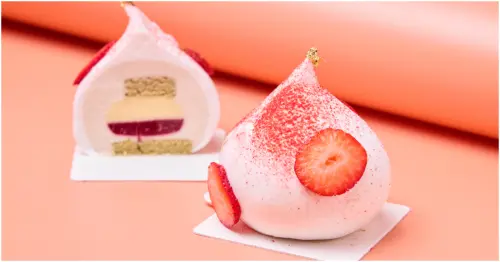 FUKUNAGA 901 在自家的冰淇淋工坊手工製作「瀨戶加柑橘」和「血橙」的雪酪,消費者可以充分享受濃郁的柑橘香氣和酸甜的口感。白花是糖霜,中間的餡還有萊姆和優格打成奶霜、蓬鬆的海綿蛋糕、自家製奶油乳酪冰淇淋、白巧克力脆片和雙橙果凍,最後還加了增添嚼勁的椰果。滿滿的維生素C!![]()