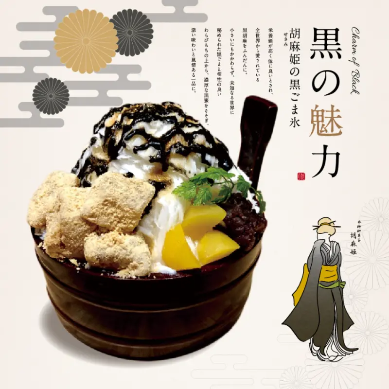 想要嘗試特別的口味嗎?點黑芝麻口味就對了!黑芝麻營養價值高,尤其對身體有益,似乎對於頭髮也有柔順、養護的效用。黑芝麻口味最特別的就是滿滿的蕨餅,搭配黑糖漿,保證好吃到讓你說不出話!![]()