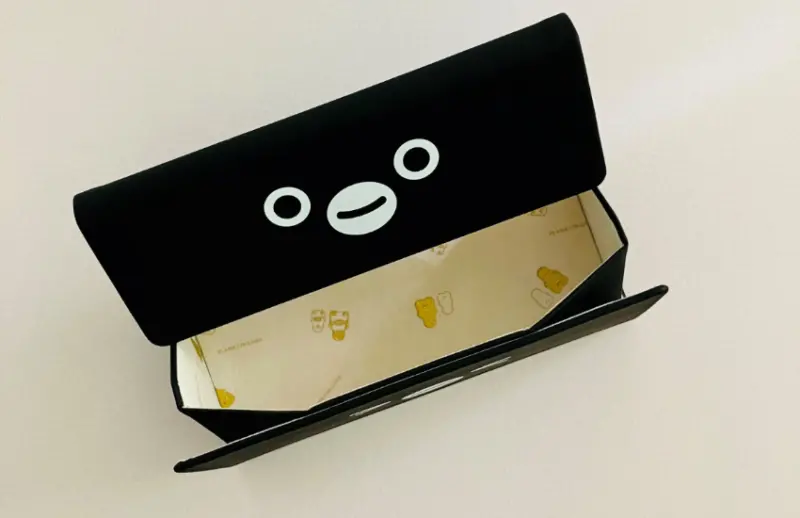 黑漆漆的外盒在印上Suica企鵝的可愛臉孔,讓整個眼睛和散發療癒氛圍。此外,當你戴著眼鏡時,還可將眼鏡盒打開攤平,收納在包包裡完全不佔空間。![]()