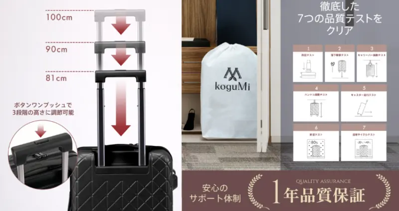 去日本一定要有一個好用的行李箱,不好用的行李箱不只不好拉,還裝不多。這次要介紹的行李箱 koguMi 不只外觀好看,在研發過程更邀請空姐參與,提供專業意見,拉高易用性。輕量化的設計也可以簡單放到飛機的行李架上,力氣較小的人用起來也不吃力。目前也有在亞馬遜上販售,要出國的,手刀先買起來!