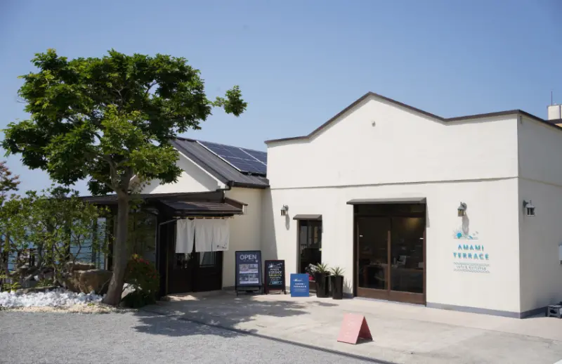 致力推廣赤穗鹽的鹽味咖啡廳「AMAMI TERRACE」,坐擁絕佳的用餐位置,來客可以一邊享用午餐、下午茶,一邊眺望瀨戶內海絕景。 咖啡廳更以被譽為日本最好的鹽「赤穗鹽」為重點,促進海洋文化的推廣。