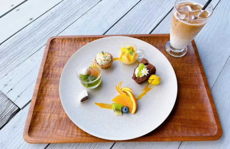 好評不斷的「幸福之鹽甜點」再推新版本!2024年夏季版提供了鹽味饅頭、檸檬塔、鹽味巧克力戚風蛋糕等多款甜點,再搭配果凍、橘子泡沫和季節水果,帶來清爽的夏日體驗。其中,赤穗名物的鹽味饅頭,因含有鹽份,在香甜滋味中能感受到清新的回味,而檸檬塔則撒上店內平釜煮製的結晶鹽,讓淡淡的鹹味與檸檬滋味譜出夏日和諧共鳴。最後,鹽味巧克力戚風蛋糕則因鹽的加持,帶出成熟的味道,與馬斯卡彭起司相得益彰。需提前一天預訂。價格2,000日幣![]()