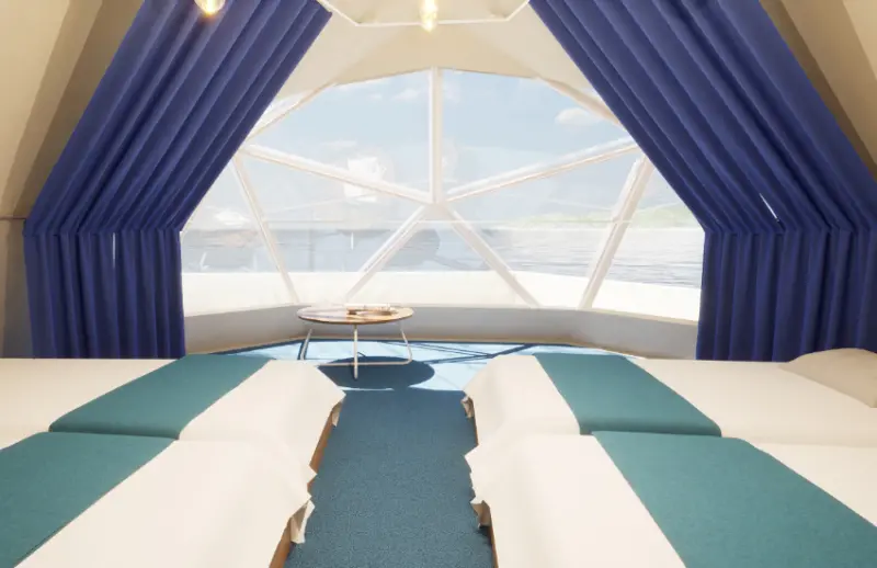 入住Setorini Bizen,你可以在私人泳池中觀賞絕美的夕陽,除此之外,由於整座豪華露營是仿照希臘聖托里尼島打造,設施內以白色為主,在陽光的照耀下,隨便拍都能拍出美照。全部客房均為海景房,藍與白的對比營造出了極致美景。不只如此,入住還能品嚐集結岡山當地精選食材的豪華露營燒烤。![]()