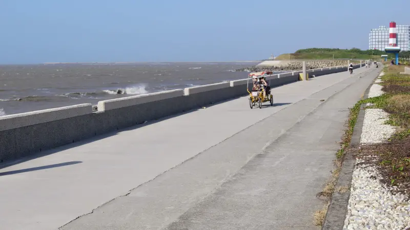 新竹17公里海岸線這的腳踏車步道規劃完整,大家可以在這盡情享受騎乘鐵馬樂悠悠啊!在這裡騎車心情都會很好呢!