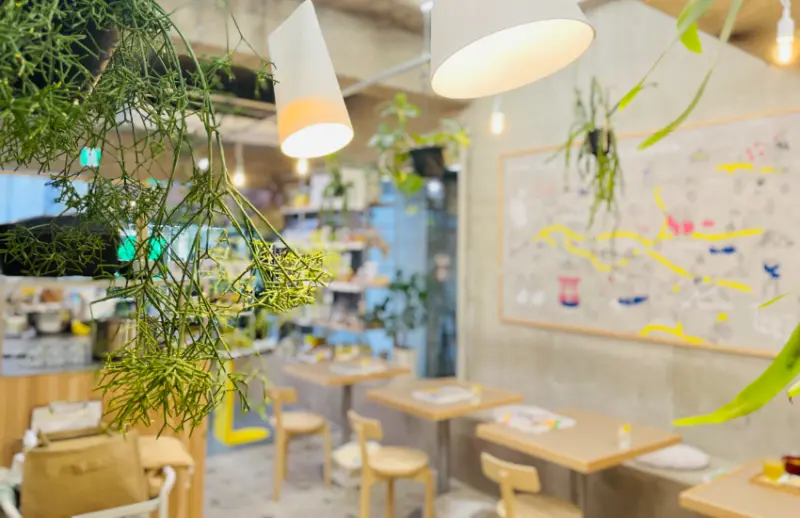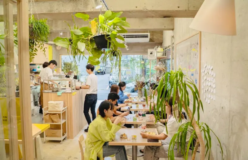 去年甫登場的複合式咖啡廳「Tabi Labo CAFE」,從店鋪外觀到室內裝潢都別具巧思,店門口設計簡約,以綠色植栽妝點,給人清新舒適的感受。走進室內同樣感受到大自然的生機盎然,內部採混泥土風格,而牆面、天花板則掛上了不同的植物盆栽,並使用廣島特產的牡蠣殼妝點牆面,營造舒適的自然風格用餐環境。此外店內設有一幅以廣島縣和山口縣為中心的大型觀光指南地圖,在享用美食的同時,也能探索下一個旅行目的地。