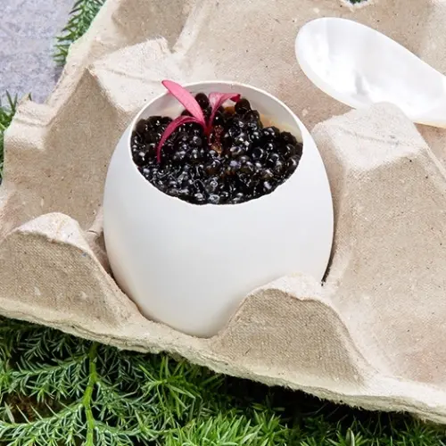 而第二味則是粵式經典作法「上湯牛油焗龍蝦」,為保留龍蝦肉質細膩口感,以60度低溫油泡浸熟,加入熬製多時的上湯和牛油,為龍蝦賦予濃鮮滋味。第三味為「古法滑蛋焗龍蝦」,蝦肉以蛋白醃製,保留肉質彈牙爽Q,再用豆豉炒香,最後把蛋液倒入,炒拌到蛋至7分熟,搭配龍蝦濃郁順口。![]()