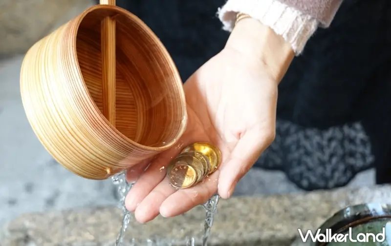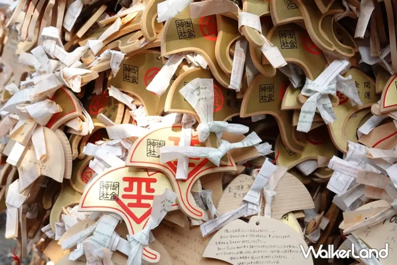 值得一提的是,「御金神社」的水手舍不僅是讓參拜者洗手、漱口,同時也開放「洗錢」,大部分觀光客都是洗自己國家的錢幣。此外,神社內有棵掛滿繪馬的銀杏樹,且繪馬特地設計成銀杏造型,並印有紅色的「金」字,相當喜氣;而在「御金神社」必買的絕對是錢包御守,錢包是可以開啟的,許多人會將洗過的銅板放入御守之中、祈求財源滾滾。