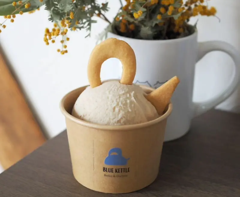除了隨著季節更替的主題雪糕,BLUE KETTLE 也有提供常駐的商品。比如茶壺造型的雪糕。茶壺造型的雪糕在雪糕上再插了2塊圓弧狀和壺嘴狀的餅乾,逗趣又可愛。雪糕本身則有不同的口味,包含草莓、櫻桃、哈密瓜、蘇打汽水、蜂蜜烏龍茶和綜合果汁等等。可以到現場,看當天的心情再決定喔!但是由於雪糕較快溶化,建議在安排行程時,直接選擇在店內用餐。![]()