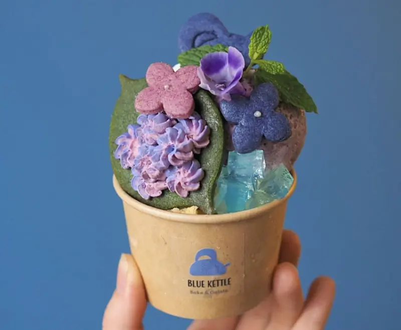 日本的每一個季節都有代表性的花卉,比如春天是櫻花,夏天就是繡球花。繡球花在日文和中漢字寫成紫陽花,所以你也可以在Instagram上看到許多人在Hashtag上標註「紫陽花」。這次要介紹的雪糕店就用繽紛的雪糕,徹底再現繡球花!一起來看堺主題雪糕店「BLUE KETTLE」的巧思!