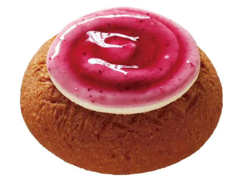 添加了起司鮮奶油與藍莓醬的起司甜甜圈,藍莓的酸甜滋味與起司鮮奶油的鹹香風味,相得益彰,不膩口。![]()