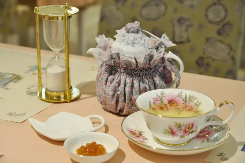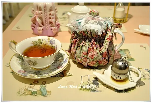 每壺茶都會掛上茶的名稱,才不會讓人搞混,而且都會穿上美麗的衣裳呢!不但可以保溫又美觀,而束口的車縫,也不是普通的鬆緊帶車縫而已唷!這樣的車縫手法在是英國傳統的車縫工法,製作出來的獨特花紋叫做「Smocking Dress」,要利用特殊的縫紉工具才能縫出,因此每個都是手工縫製,須採用純棉布料且有厚度的限制。這帶著英式鄉村風的保溫罩,也是相當受歡迎!甚至有人想買回家,在家喝下午茶也能賞心悅目!