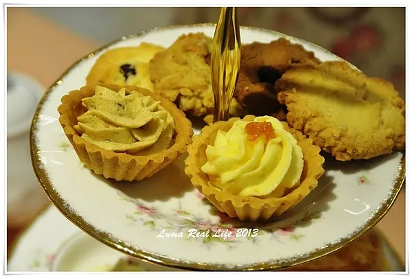 第三層的點心是薰衣草及香橙點心塔還有不同口味的手工餅乾, 薰衣草及香橙點心塔內餡的香濃綿密口感, 讓我到現在還念念不忘!