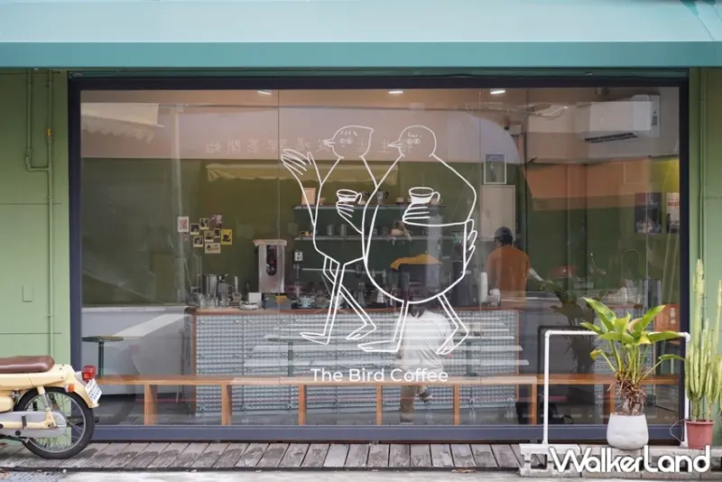 「The Bird Coffee」店門前以綠色牆面搭配橘色座椅、數張電影海報,畫面和諧,也是文青來此喝咖啡必拍的打卡點。店內空間小巧,座位數不多,因此四人以上無法接待(除非不介意分開坐);而「The Bird Coffee」除了供應咖啡、甜點之外,現場還有販售趣味性十足的裝飾小物。