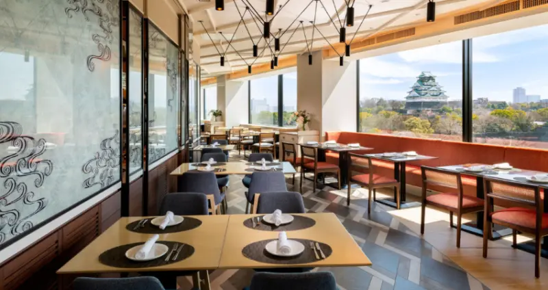 餐廳「全天候餐飲」提供早餐、午餐和晚餐,餐廳採自助形式。餐廳內部的玻璃落地窗讓你在用餐時可以欣賞到大阪城的全景。同一樓層的「酒廊&酒吧」在白天提供沙拉和義大利麵等單點餐品,以及下午茶、甜點和咖啡;晚間則提供招牌雞尾酒和精釀啤酒。![]()