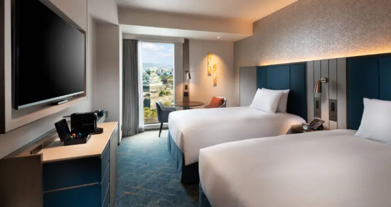 飯店全373間客房分為4種類型,以水為主題,融入大量藍色元素。此外,從客房內可以充分感受到大阪的四季變遷。城景房可以欣賞到大阪城公園的壯麗景色,而河景房則可以俯瞰大川,尤其是春天盛開的櫻花,並能享受河畔的開闊景觀和大阪市區的夜景。![]()