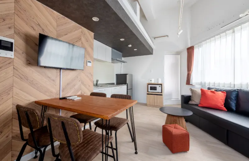 2023年新建的現代化建築「CLAVIS下落合」,配備全新家具,採簡約溫暖的室內裝潢風格,營造出舒適宜人的居住空間。旅宿提供四種不同的房型,每間房間都有獨特的設計風格,無論是獨自旅行的自由工作者,或是攜家帶眷的長期居留者,都能找到最適合的空間。