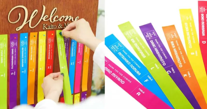 有了這個就不需要座次表了!印有賓客名字和桌號的音樂祭風入場手環,可以當作座位卡使用。賓客可以直接綁在手腕上。在訂製的時候還可以選擇設計和顏色,共有7種顏色可以選擇! ![]()