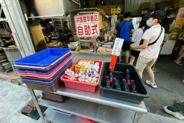 一般早餐店的點餐方式是現點現做,這家是採自助式,熱門餐點不是蛋餅、漢堡,而是當地的招牌小吃,琉球粿、蔥油條及香腸碗粿。<全文介紹>