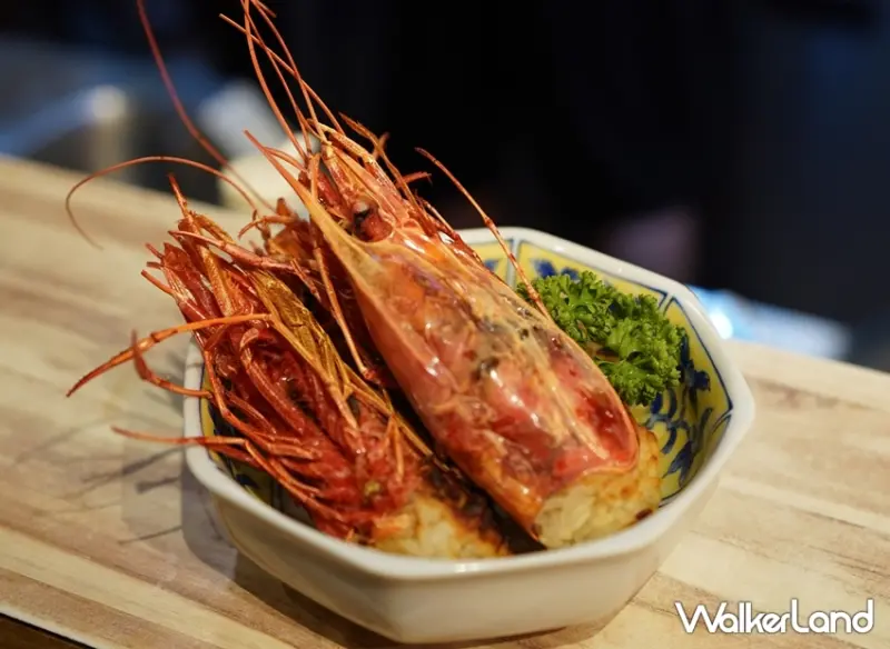 蟹膏干貝堡、胭脂蝦刺身二吃