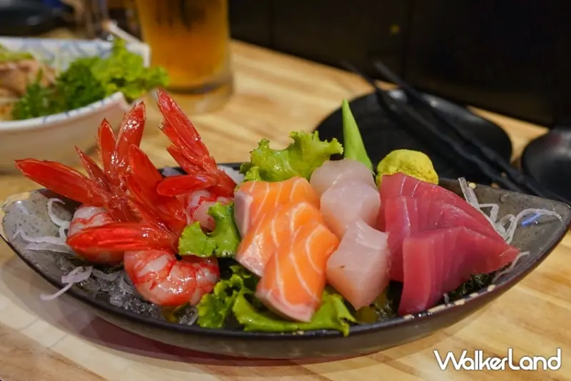 「擇食居酒屋」菜單應有盡有,包含生魚片、手卷、壽司、燒物以及炸物等。生魚片十分新鮮厚實,鮭魚油花分布均勻,喜歡吃生魚片的人一定要點。眾多海鮮料理汁中,特別推薦「胭脂蝦刺身二吃 」,品嘗一蝦二吃,師傅將蝦頭塞入米飯烤炙,蝦尾則是直接生吃。