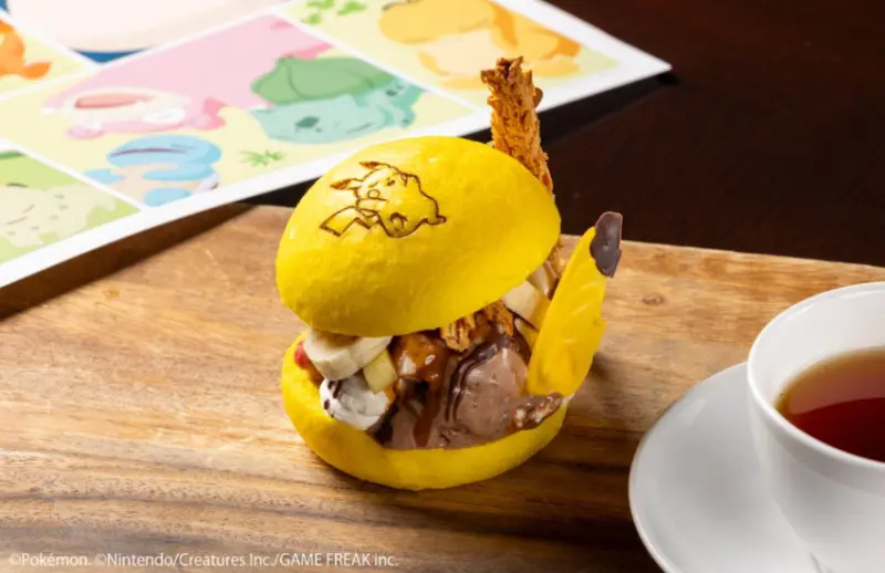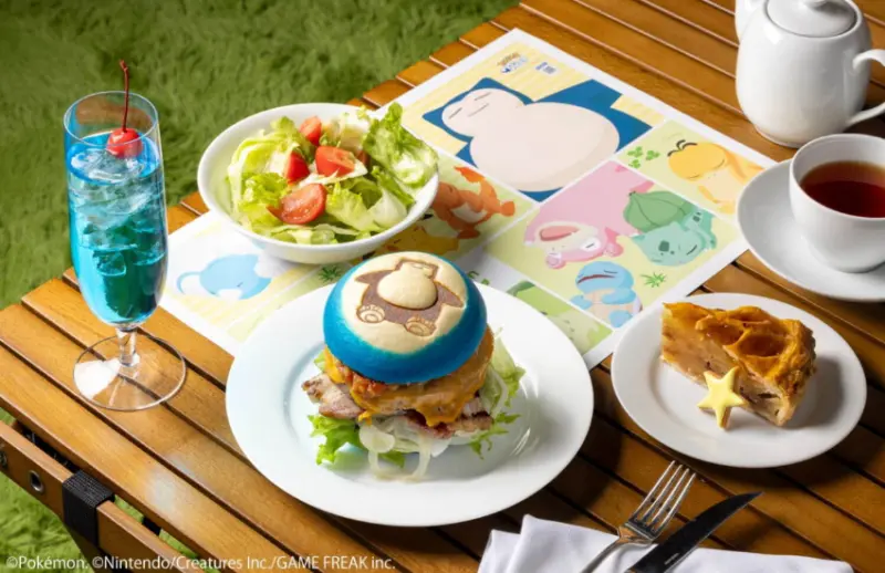除了主題套房吸睛外,「Pokémon Sleep」主題的限定菜單也同樣讓人驚艷。其中最受矚目的就屬以重達460公斤的卡比獸為概念,製成「總重量460克」的美食漢堡,漢堡麵包選用了醒目的卡比獸藍,並壓上卡比獸的烙印,可愛到讓人捨不得吃。另外還有香甜版的皮卡丘主題漢堡,以巧克力香蕉聖代取代漢堡肉,麵包皮選用了皮卡丘黃,也同樣印有皮卡丘討喜的模樣。甜點類還有「Pokémon Sleep」中出現過的「Poke小餅乾」及「胖丁的布丁聖代」等甜品。