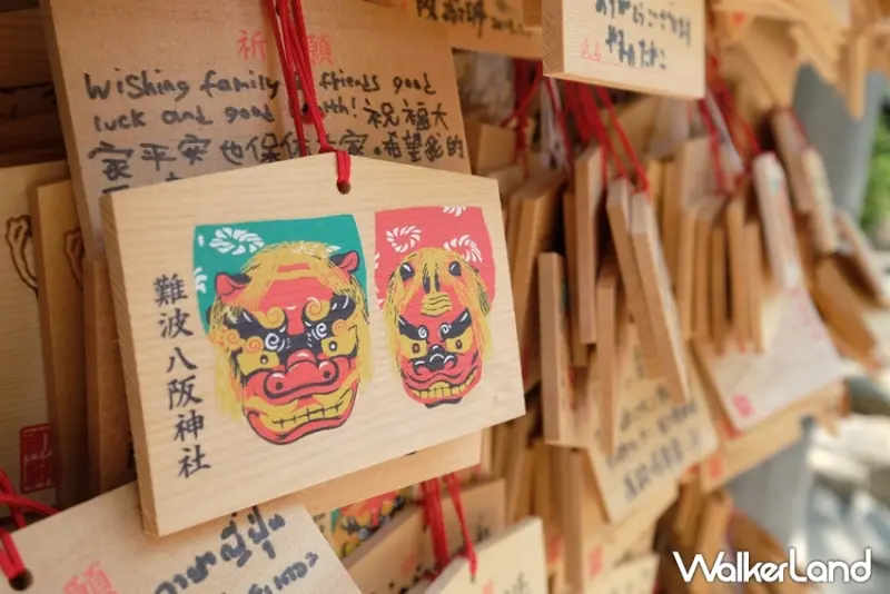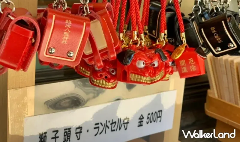 身為大阪特色神社,推出的繪馬和御守自然也別具特色。繪馬上可見獅子頭繪圖之外,也有販售紅色獅子頭的造型御守,是神社控來「難波八阪神社」必買的御守。此外,還有推出日本小學生書包造型御守,特別適合買來送給仍在求學階段的年輕學子、祝福他們學業進步。