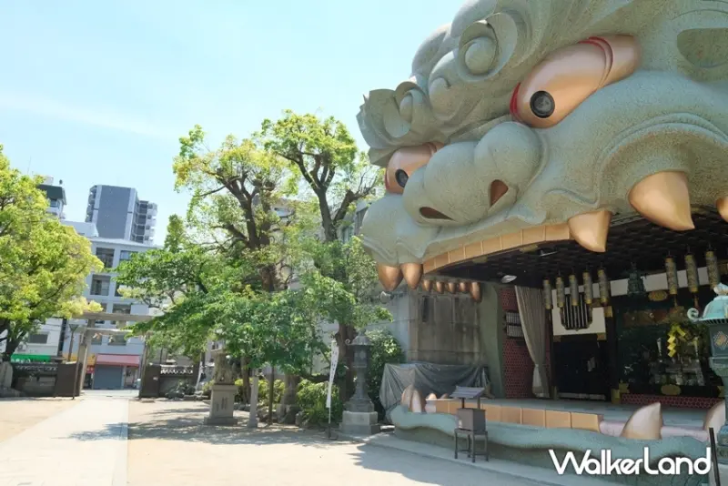 大阪景點不只環球影城!推薦私房景點「難波八阪神社」,是過目難忘的大阪特色神社,隱藏在住宅區之中。吸引全球觀光客、神社控前來朝聖的正是神社中巨大霸氣、青面獠牙的獅子頭,傳聞獅子的金口可以將每位參拜者的厄運吸走。![]()