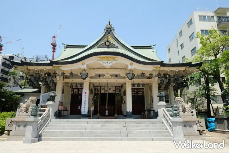 「難波八阪神社」位於大阪難波站附近的住宅區裡,自南海難波站步行過去約五分鐘,對於觀光客來說算是很好抵達的特色神社。神社創建的確切年代已不可考,最早有紀錄的時間點大約是仁德天皇時代(1069年)由於彼地爆發傳染病,開始祭拜祇園牛頭天王,被當地人稱作「難波下の宮」,是鎮守難波這一帶的古老神社,現在所見的神社本殿是1974年5月再建。