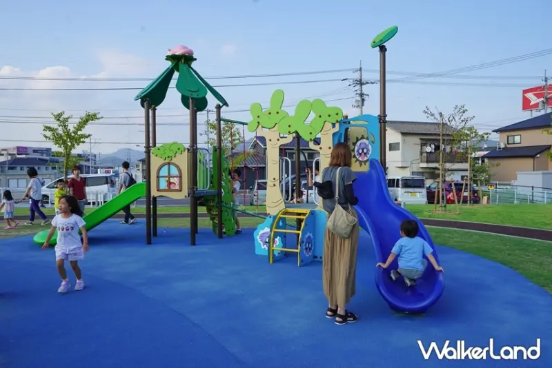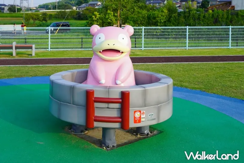 「呆呆獸公園」除了最顯眼的呆呆獸溜滑梯之外,園內許多角落也都能尋獲粉嫩又呆萌的呆呆獸;相信寶可夢迷都知道,呆呆獸被大舌貝咬住尾巴會觸發進化,因此部分設施也會看見大舌貝出沒。而公園周邊馬路上也有呆呆獸和大舌貝圖案的水溝蓋,來訪的寶可夢迷別忘了留意一下地面上的可愛風景。