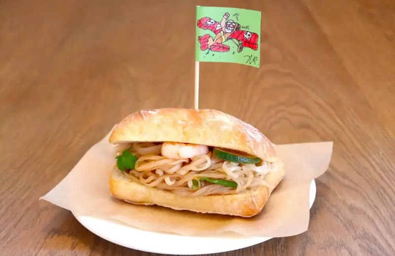吉卜力大倉庫的「咖啡廳大陸橫斷飛行」,標榜專門提供給長途飛行員的菜色,方便又美味。而2024年夏天,更要帶大家來場東南亞美食之旅!期間限定的「炒河粉」三明治,彷彿讓你一秒飛到南洋,體驗道地的東南亞風情。價格約為850日圓。![]()