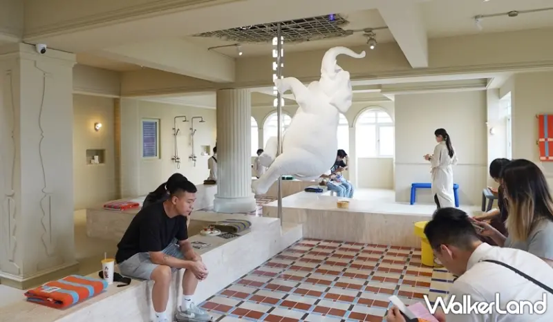參觀動線推薦先至地下室「十字廳梯」,只有一部電梯是真的、可以直達三樓,其他則是分別通往列車和浴室等空間;接著,搭乘電梯上三樓「奶油浴場」小歇片刻,再慢慢逛下來,二樓有監控室場景和藝術客房,有的房門可以打開、瞬間移動到有貓咪天井的空間;即便是無法開啟的客房,不妨也湊近貓眼一探究竟。