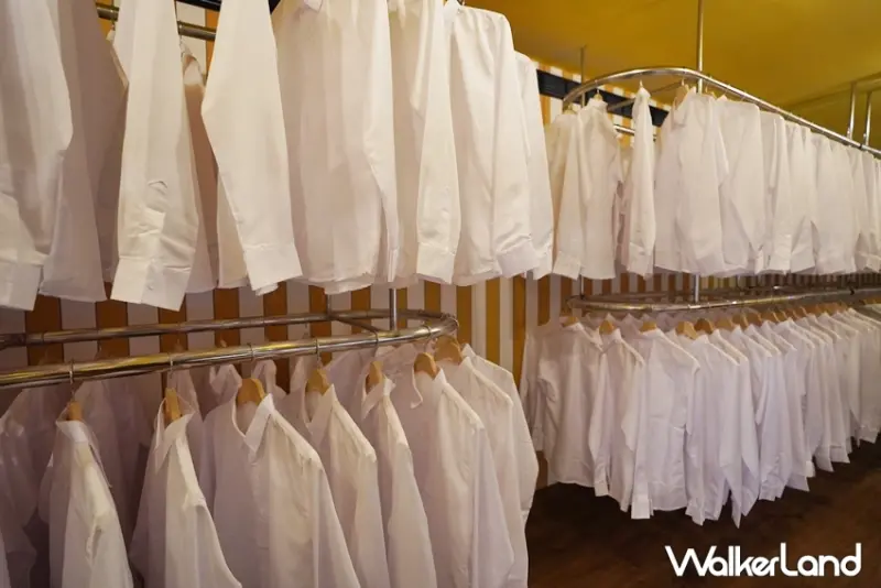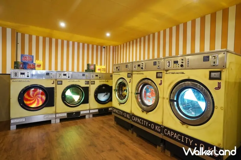 「BUTTER HOTEL 奶油飯店」有特別設定參觀情境,讓大家有種來應徵飯店員工的感覺,因此率先映入眼簾的是飯店洗衣部,少數機台還真的會運轉,而穿過綿延的白色襯衫,就代表冒險正式展開;要注意的是,飯店大廳場景的空間,此處是出口、安排客人從此Chcek Out,也是一種巧思。