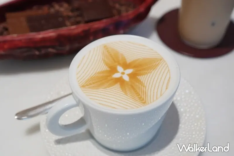 電梯門一開啟,率先映入眼簾的是紅蓮花單人沙發,以及LV行李箱堆疊的打卡點,座位區奢華優雅,氛圍和服務人員都不會讓人感到壓力。「LE CAFE V」的甜點都相當精緻,如:馬達加斯加香草千層派、季節限定的哈密瓜奶油蛋糕以及巧克力,其中巧克力還有LV經典花紋、皮包造型等,價格依款式略有差異。此外,若想來杯有LV拉花的飲品,只要菜單上前方有「V」的都會有LV經典拉花,拍照打卡必點。