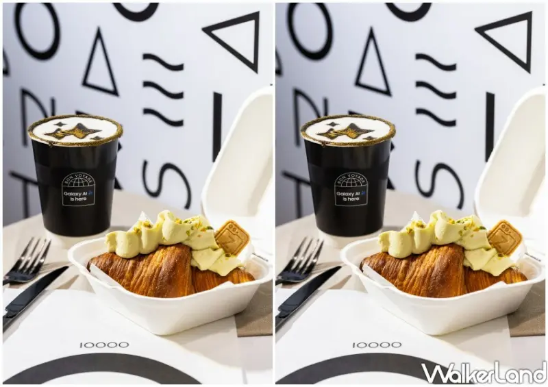 TEN THOUSAND與Galaxy AI的聯名餐點同樣不容錯過,這次特別推出兩款靈感源自Galaxy Z Fold6及Galaxy Z Flip6的甜點。「Galaxy Z 開心果鮮奶油可頌」以「晨曦黃」配色呈現,搭配香醇濃郁的開心果鮮奶油,層次豐富,口感細膩。而「Galaxy Z 莓果鮮奶油可頌」則以「鹽湖粉」配色,香甜的莓果鮮奶油與草莓碎粒相輔相成,滿滿的少女心爆棚。